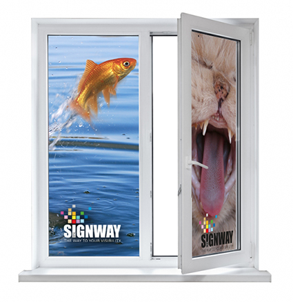 We hebben alles om uw ramen te bekleven met sprekende reclameboodschappen: raamstickers, raamfolie, zandstraalfolie, one-way vision...